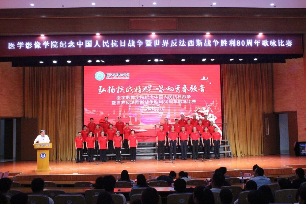 9月25日晚,滨州医学院荣祥楼学术报告厅内歌声激昂、掌声阵阵。学校老教师合唱团与医学影像学院学子同台,以一场“纪念中国人民抗日战争暨世界反法西斯战争胜利80周年”歌咏比赛,打造了一堂别开生面的“音乐思政课”,将厚重历史与青春力量深度融合。