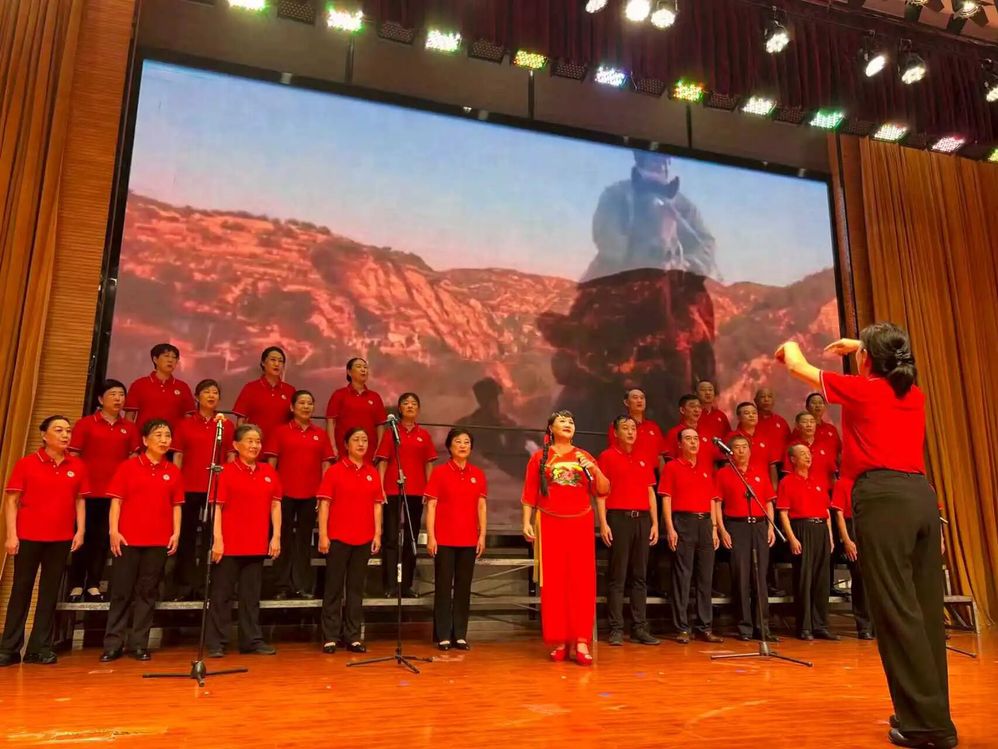 校关工委副主任、离退休党委书记李梅,医学影像学院关工委主任、党委书记董庆顺及相关部门老师出席活动,与师生共同观看演出,活动由医学影像学院党委副书记姜涛主持。作为整场活动的开篇,五老合唱团的登台展演瞬间点燃全场氛围——平均年龄逾65岁的老教师们精神矍铄,以一曲经典革命歌曲《山丹丹开花红艳艳》,用饱经岁月沉淀的歌声,带领观众回溯如火如荼的革命岁月。高亢悠扬的旋律中,黄土高坡的壮阔、延安圣地的灯火与军民鱼水情仿佛跃然眼前,台下爆发出经久不息的掌声。