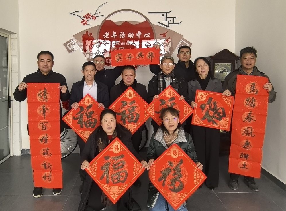 为深化校地帮扶协作,以文化惠民助力乡村振兴建设,近日,离退休工作处组织学校老同志书画协会骨干成员,走进阳信县省派第一书记帮扶村,开展“迎新春、送福字、赠春联”文化惠民活动。